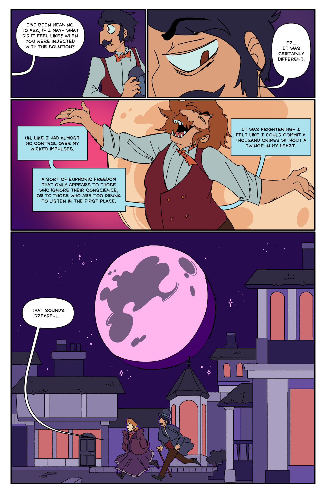 My usual process while drawing this comic goes a bit like this: I freak out until I have a decent plan, then once the sketch is in I usually like it a lot. Then I do the flat colors… and I hate it. I have to remind myself that this is simply because it’s not finished yet, because the final shading/layer adjustments REALLY change the vibe of a page. Here’s a few comparisons so you can see what I mean!